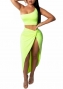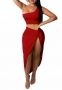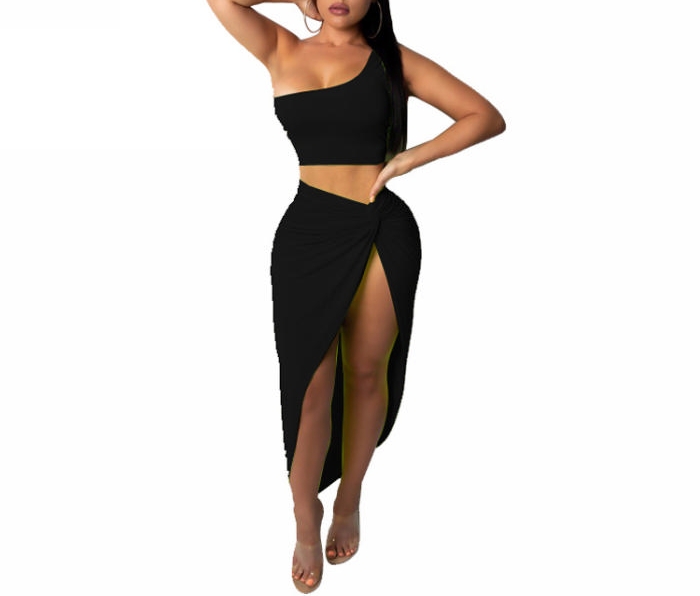 (Real Image)2023 Styles Women Sexy&Fashion Spring&Summer TikTok&Instagram Styles Solid Color Irregular Two Piece DressSKU: #OU186-3