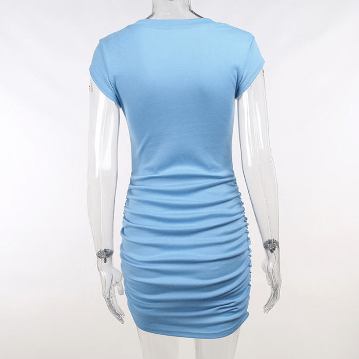 (Real Image)2023 Styles Women Sexy&Fashion Spring&Summer TikTok&Instagram Styles Solid Color Mini DressSKU: #OM383-1