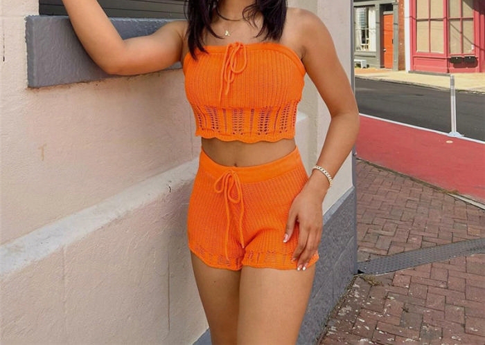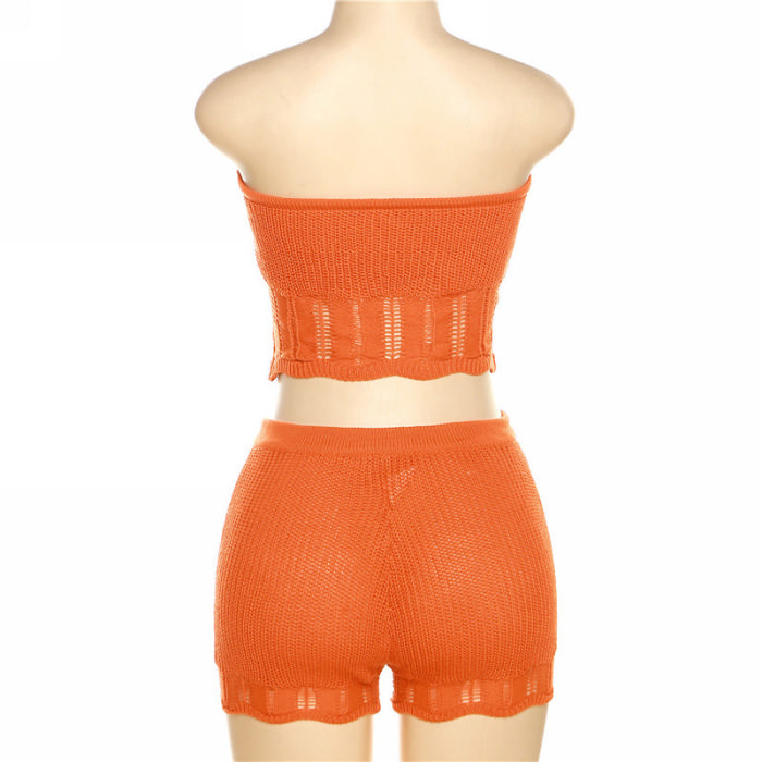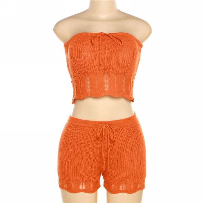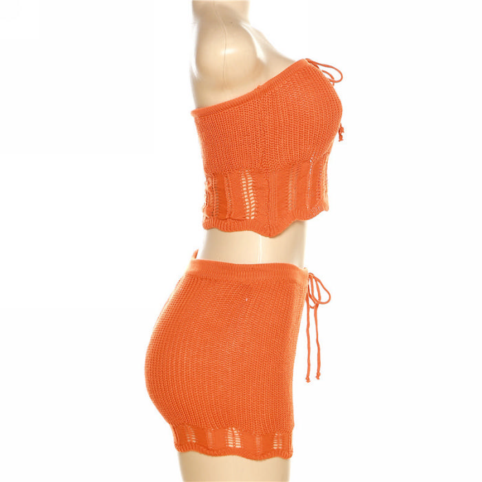 (Real Image)2023 Styles Women Sexy&Fashion Spring&Summer TikTok&Instagram Styles Solid Color Sweater Short Two Piece SuitSKU: #OM465-3
