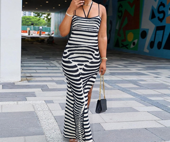 (Real Image)2023 Styles Women Sexy&Fashion Spring&Summer TikTok&Instagram Styles Strap Print Maxi DressSKU: #CF47610-2