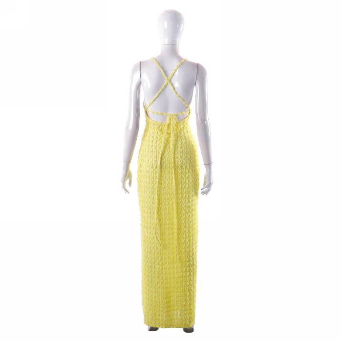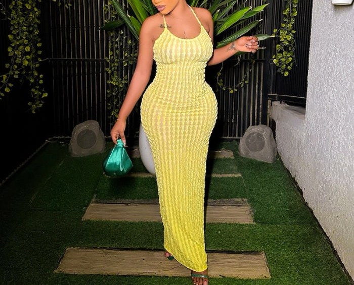 (Real Image)2023 Styles Women Sexy&Fashion Spring&Summer TikTok&Instagram Styles Strap Yellow Maxi DressSKU: #CF47463-1