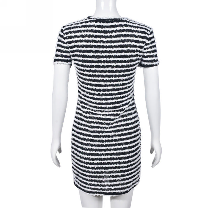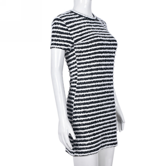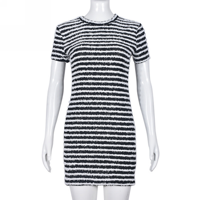 (Real Image)2023 Styles Women Sexy&Fashion Spring&Summer TikTok&Instagram Styles Striped Short Sleeve Mini DressSKU: #CF59598-1