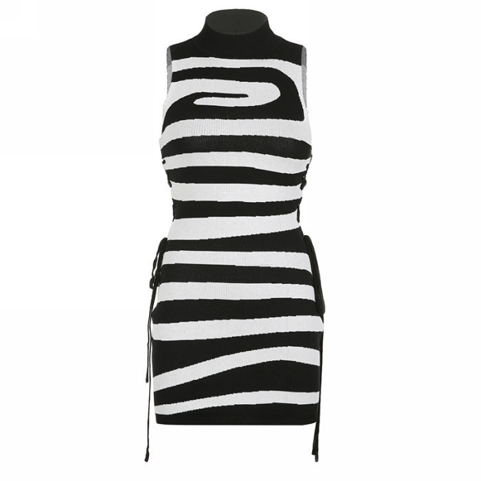 (Real Image)2023 Styles Women Sexy&Fashion Spring&Summer TikTok&Instagram Styles Sweater Black&White Mini DressSKU: #CF86015-1