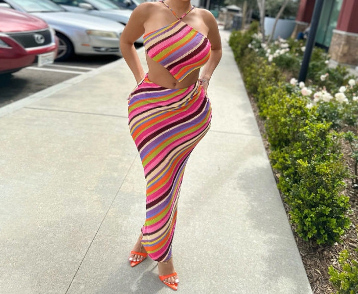 (Real Image)2023 Styles Women Sexy&Fashion Spring&Summer TikTok&Instagram Styles Sweater Colorful Maxi DressSKU: #CF38183-1