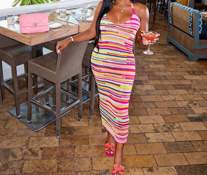 (Real Image)2023 Styles Women Sexy&Fashion Spring&Summer TikTok&Instagram Styles Sweater Colorful Maxi DressSKU: #CF88066-1