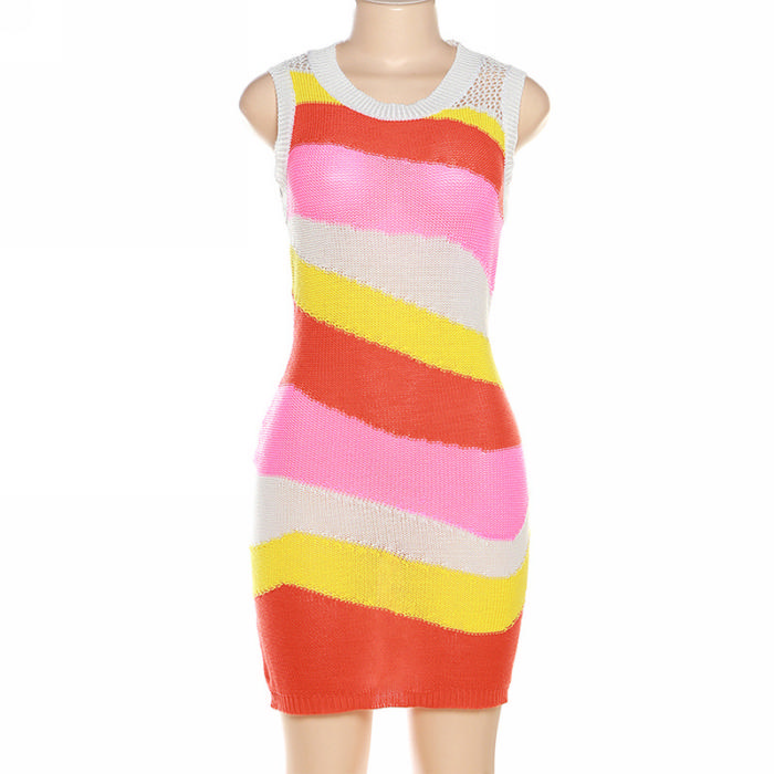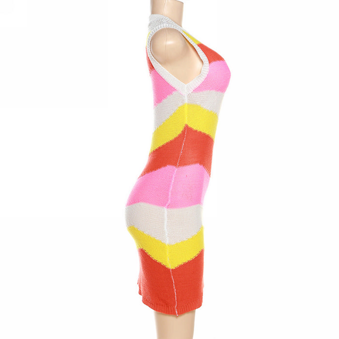 (Real Image)2023 Styles Women Sexy&Fashion Spring&Summer TikTok&Instagram Styles Sweater Contract Color Mini DressSKU: #CF77370-1