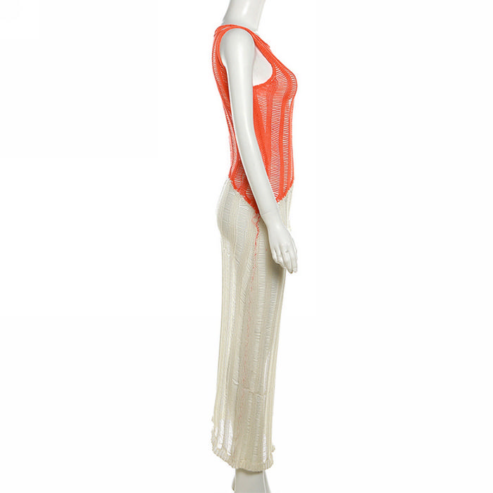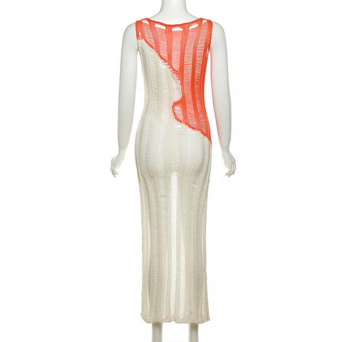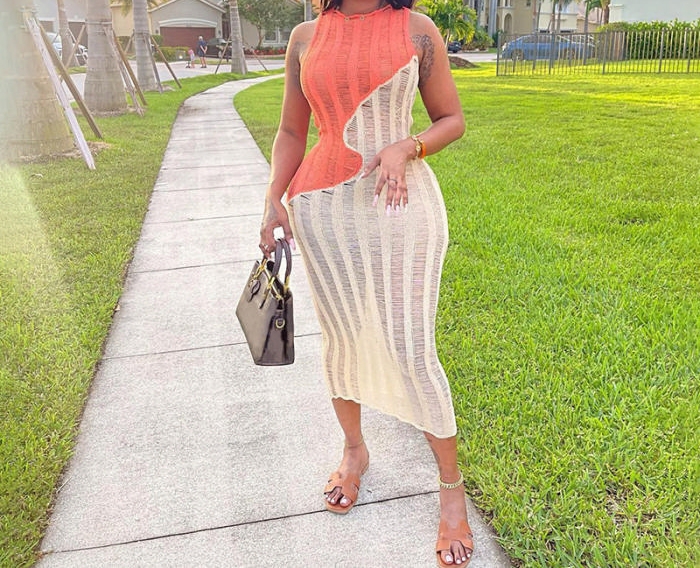 (Real Image)2023 Styles Women Sexy&Fashion Spring&Summer TikTok&Instagram Styles Sweater Contrast Color Maxi DressSKU: #CF77436-1