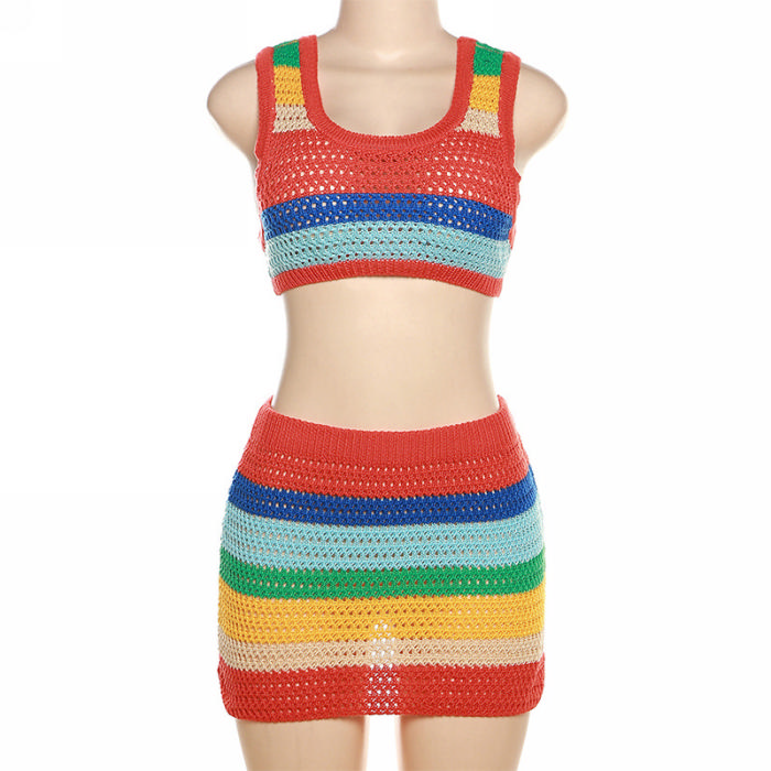 (Real Image)2023 Styles Women Sexy&Fashion Spring&Summer TikTok&Instagram Styles Sweater Contrast Color Two Piece DressSKU: #CF47616-1