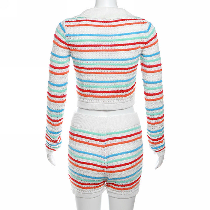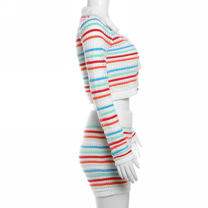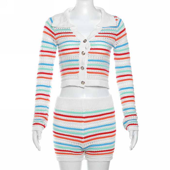 (Real Image)2023 Styles Women Sexy&Fashion Spring&Summer TikTok&Instagram Styles Sweater Front Button Short Two Piece SuitSKU: #CF83215-1