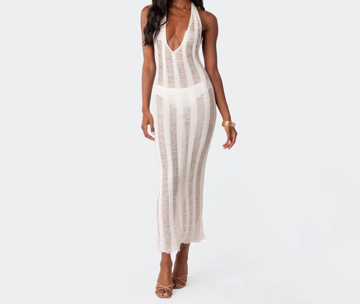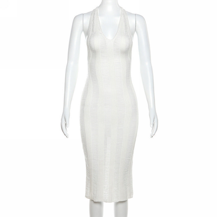 (Real Image)2023 Styles Women Sexy&Fashion Spring&Summer TikTok&Instagram Styles Sweater Halter Backless Maxi DressSKU: #CF77427-1