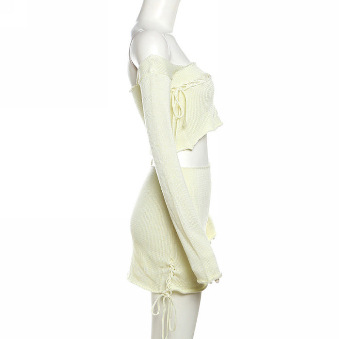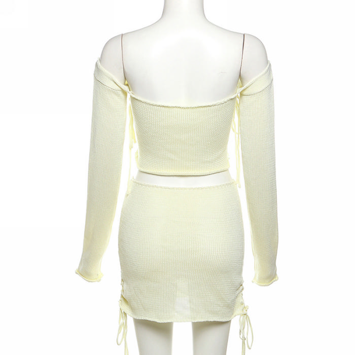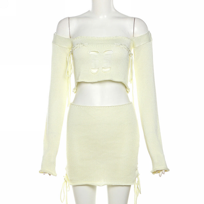 (Real Image)2023 Styles Women Sexy&Fashion Spring&Summer TikTok&Instagram Styles Sweater Hollow Long Sleeve Off Shoulder Mini DressSKU: #CF77550-1