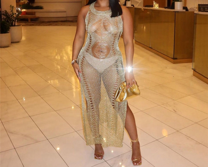 (Real Image)2023 Styles Women Sexy&Fashion Spring&Summer TikTok&Instagram Styles Sweater Hollow Maxi DressSKU: #CF77460-1