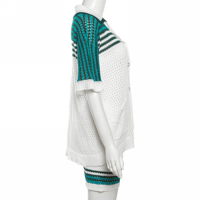 (Real Image)2023 Styles Women Sexy&Fashion Spring&Summer TikTok&Instagram Styles Sweater Hollow Short Two Piece SuitSKU: #CF77507-1