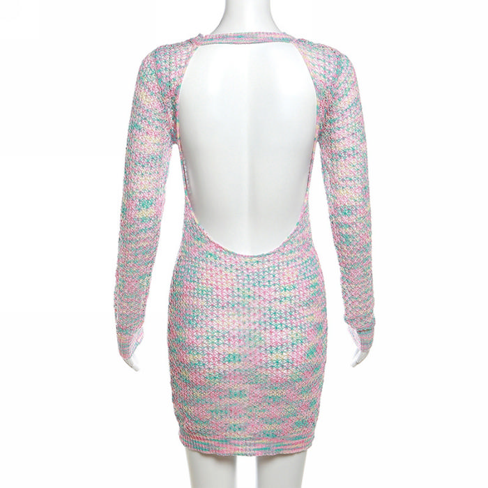 (Real Image)2023 Styles Women Sexy&Fashion Spring&Summer TikTok&Instagram Styles Sweater Long Sleeve Backless Mini DressSKU: #CF77511-1