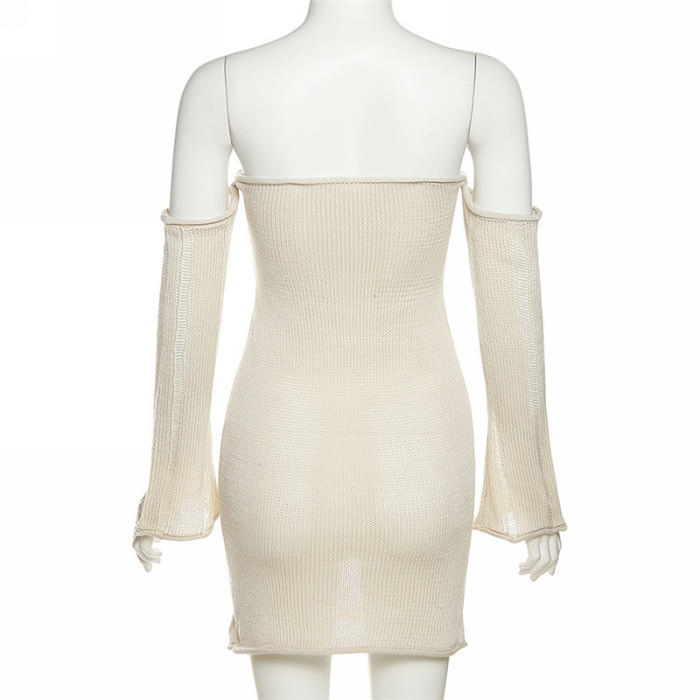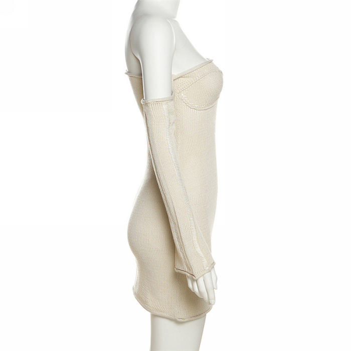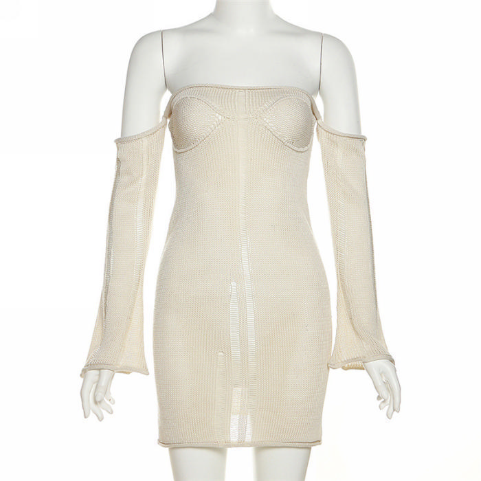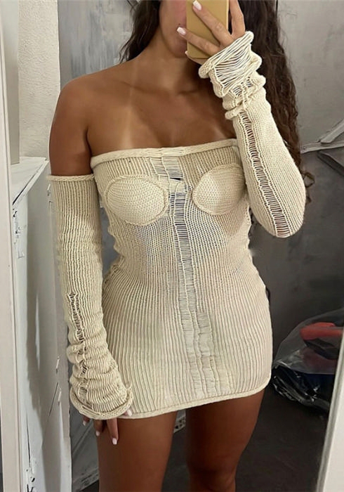 (Real Image)2023 Styles Women Sexy&Fashion Spring&Summer TikTok&Instagram Styles Sweater Off Shoulder Long Sleeve Mini DressSKU: #CF77221-1