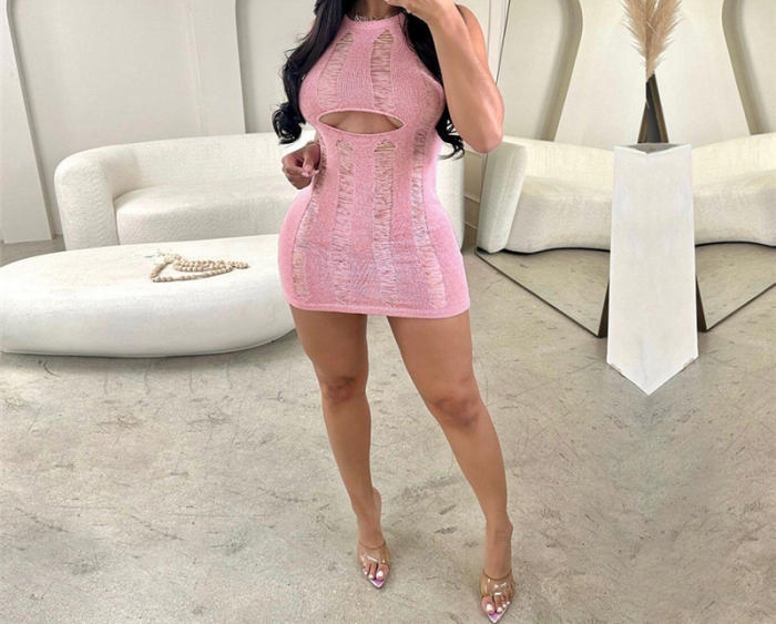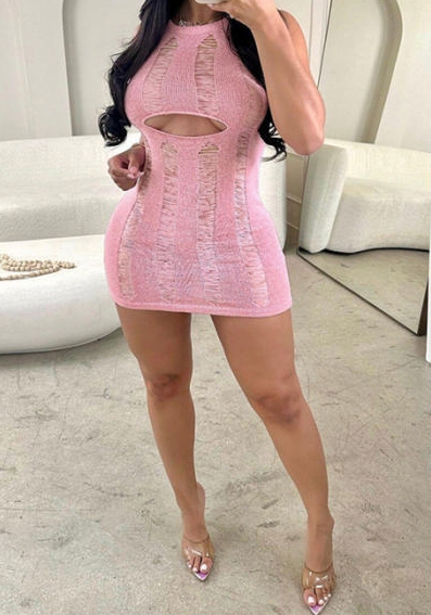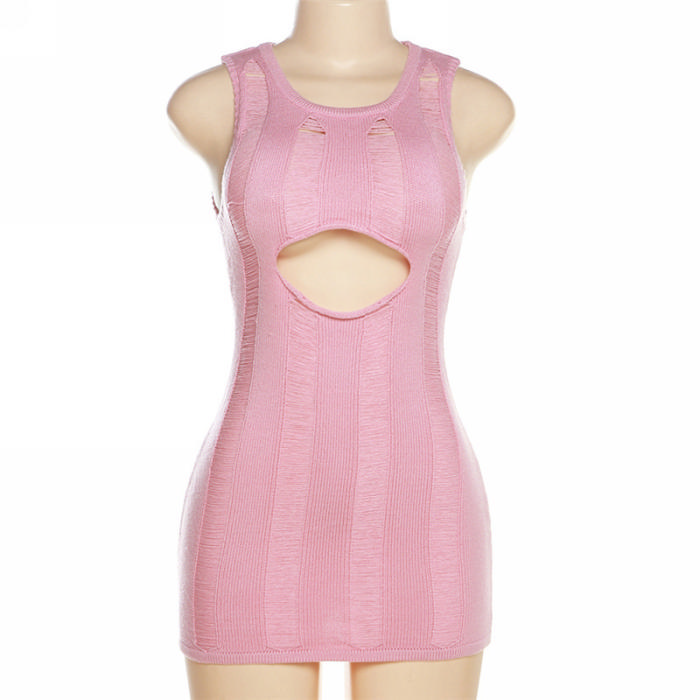 (Real Image)2023 Styles Women Sexy&Fashion Spring&Summer TikTok&Instagram Styles Sweater Ripped Cut Out Mini DressSKU: #CF77361-1