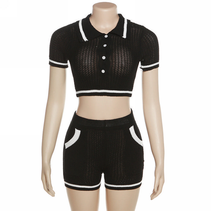 (Real Image)2023 Styles Women Sexy&Fashion Spring&Summer TikTok&Instagram Styles Sweater Short Two Piece SuitSKU: #CF77277-1
