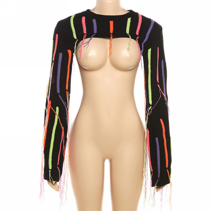 (Real Image)2023 Styles Women Sexy&Fashion Spring&Summer TikTok&Instagram Styles Sweater Tassel TopsSKU: #CF77325-1
