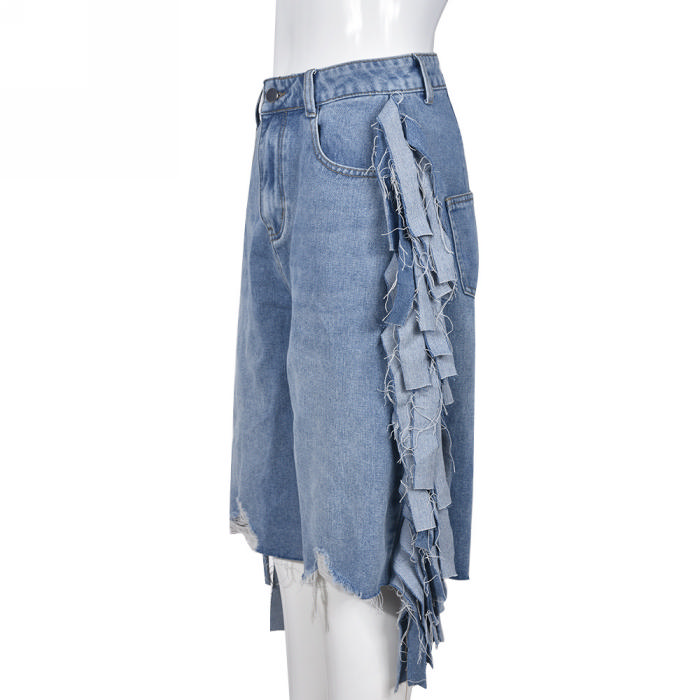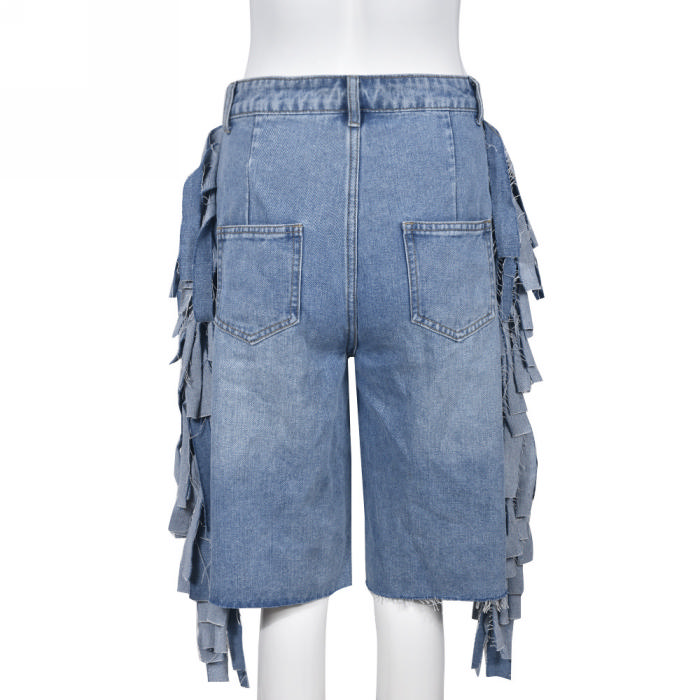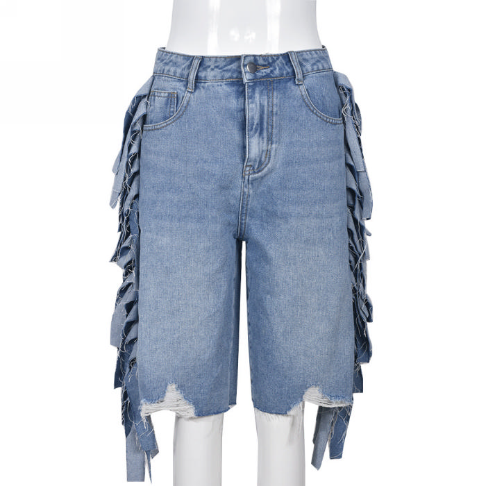 (Real Image)2023 Styles Women Sexy&Fashion Spring&Summer TikTok&Instagram Styles Tassel Jeans Midi PantsSKU: #CF59566-1