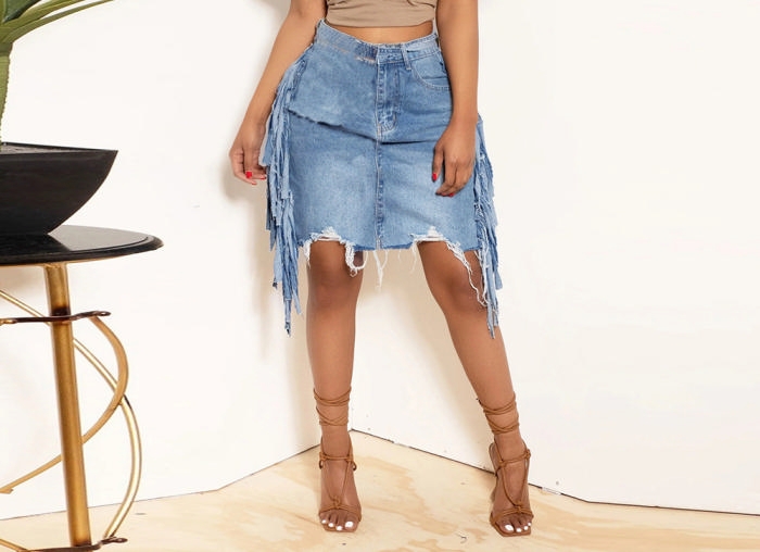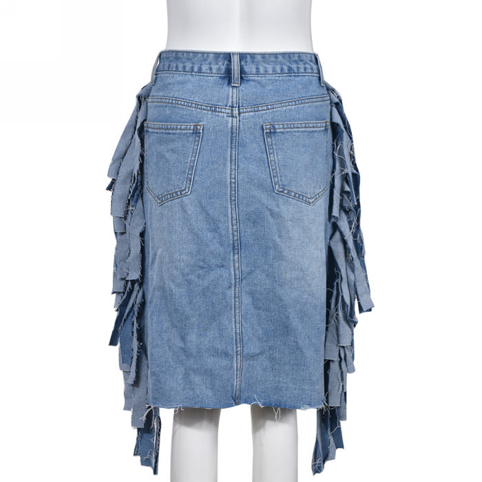 (Real Image)2023 Styles Women Sexy&Fashion Spring&Summer TikTok&Instagram Styles Tassel Jeans SkirtsSKU: #CF59565-1