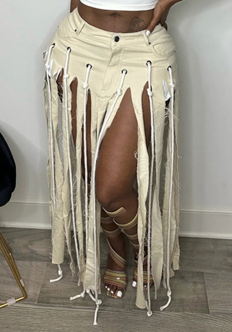 (Real Image)2023 Styles Women Sexy&Fashion Spring&Summer TikTok&Instagram Styles Tassel Maxi SkirtsSKU: #CF59545-1