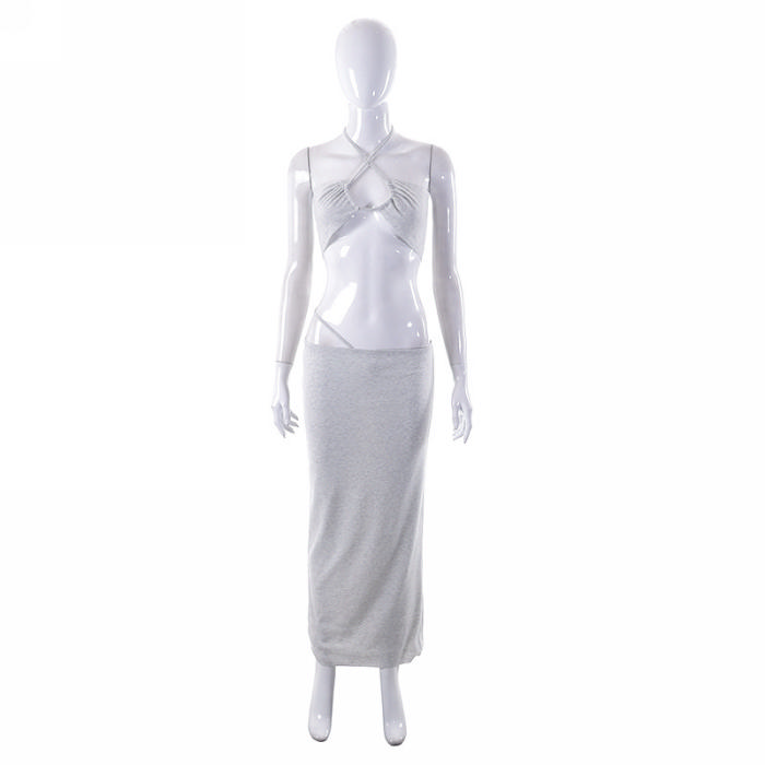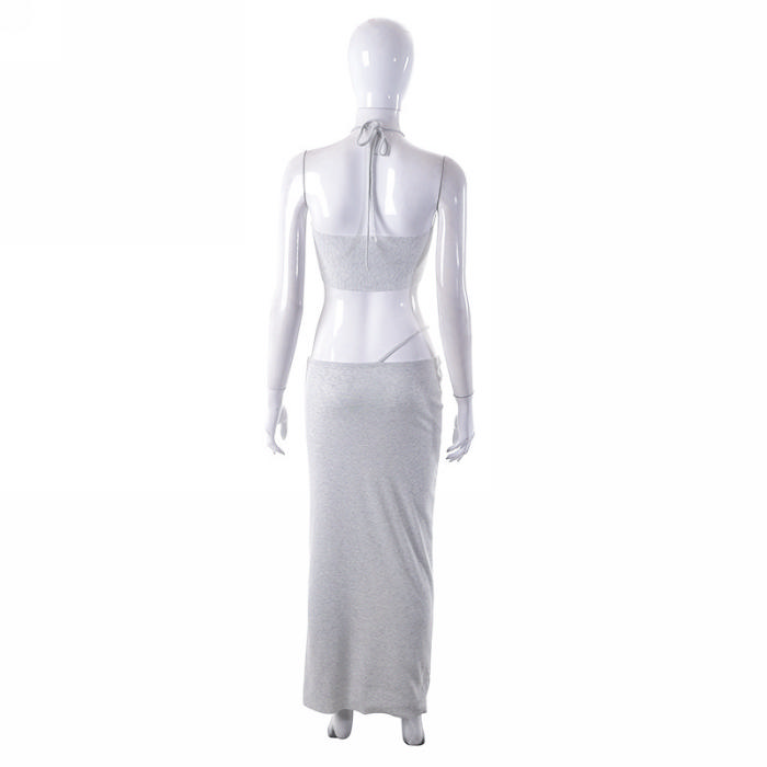 (Real Image)2023 Styles Women Sexy&Fashion Spring&Summer TikTok&Instagram Styles Tie Bra Maxi DressSKU: #CF47443-1