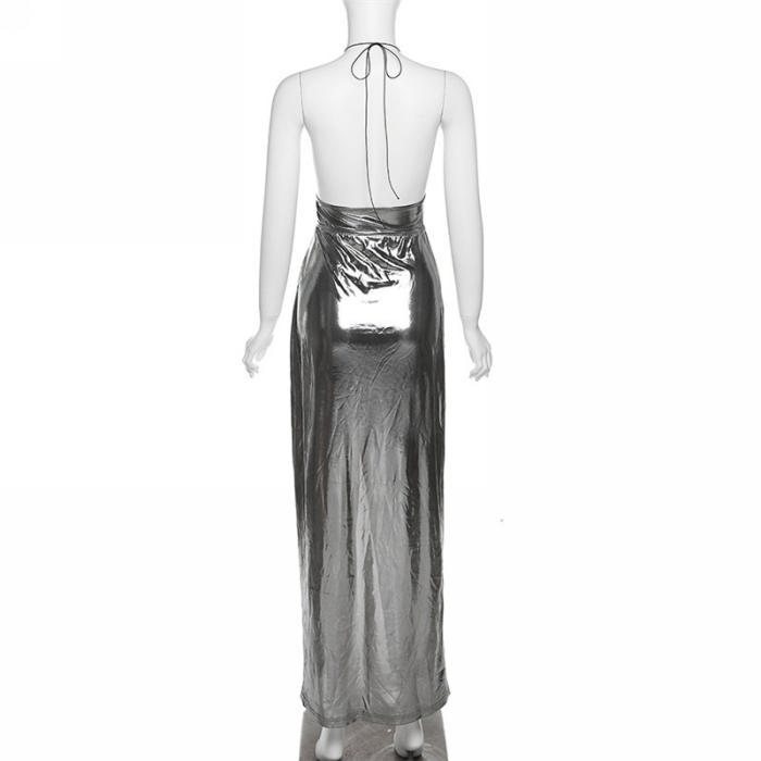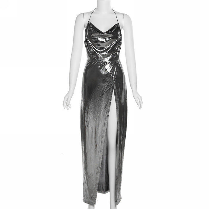(Real Image)2023 Styles Women Sexy&Fashion Spring&Summer TikTok&Instagram Styles Tie High Split Maxi DressSKU: #CF83094-1
