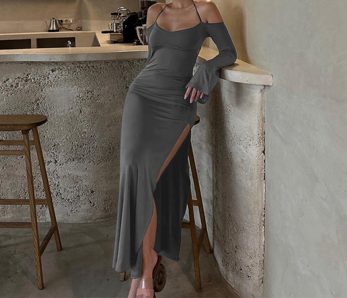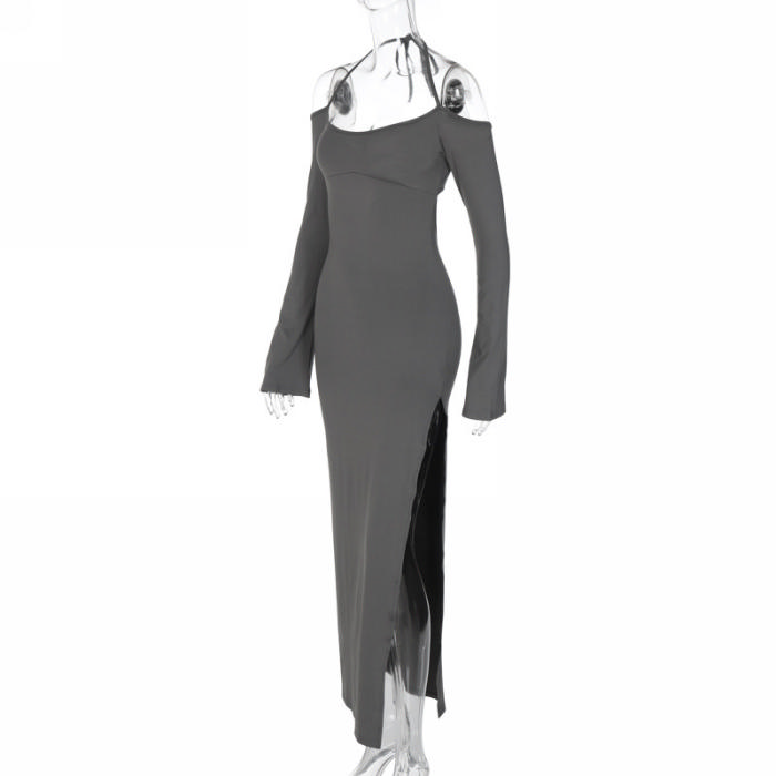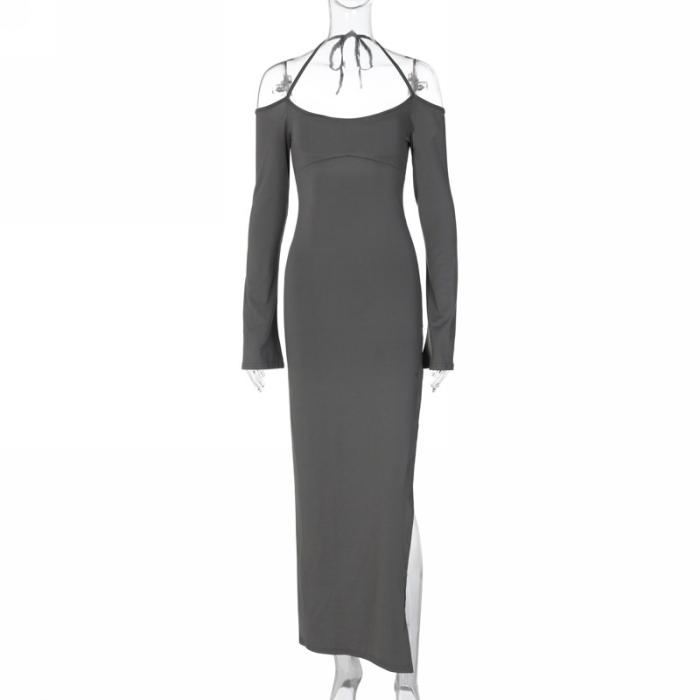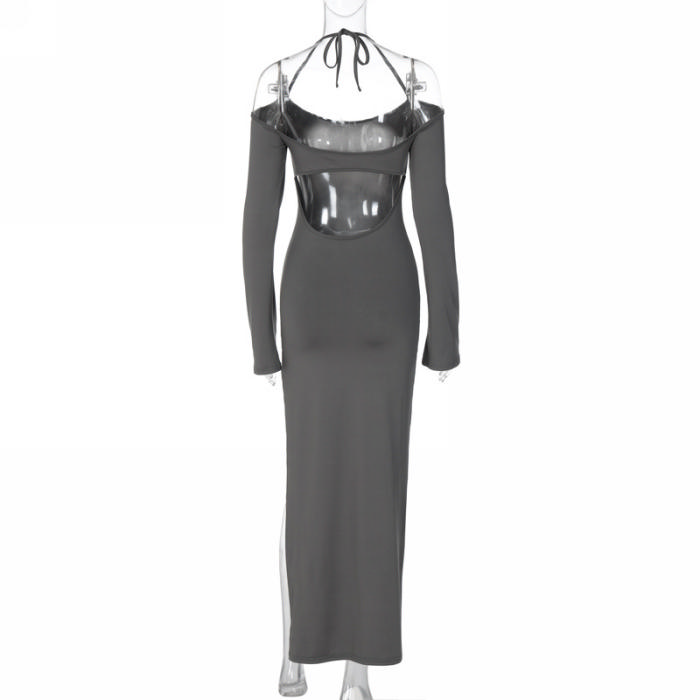(Real Image)2023 Styles Women Sexy&Fashion Spring&Summer TikTok&Instagram Styles Tie Long Sleeve Maxi DressSKU: #CF88127-1