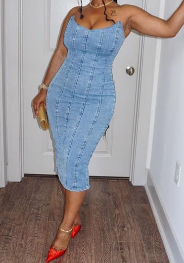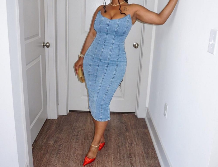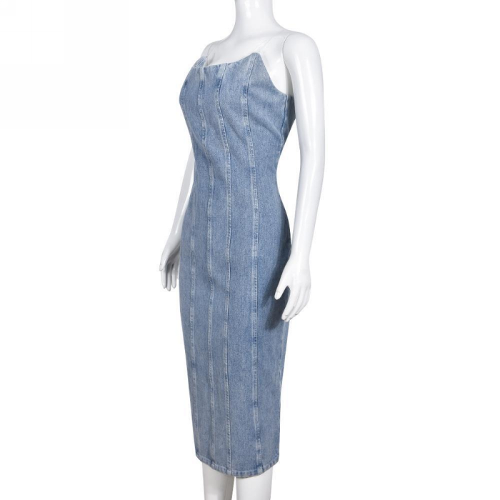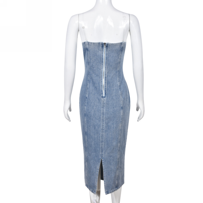 (Real Image)2023 Styles Women Sexy&Fashion Spring&Summer TikTok&Instagram Styles Tube Jeans Maxi DressSKU: #CF59672-1