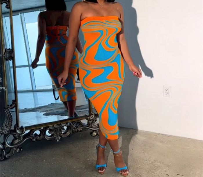 (Real Image)2023 Styles Women Sexy&Fashion Spring&Summer TikTok&Instagram Styles Tube Print Maxi DressSKU: #CF47620-1