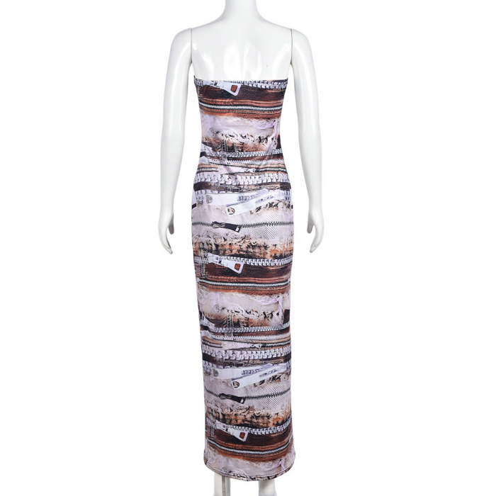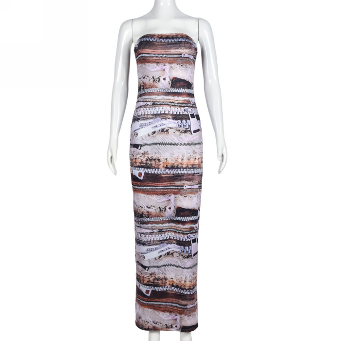 (Real Image)2023 Styles Women Sexy&Fashion Spring&Summer TikTok&Instagram Styles Tube Print Maxi DressSKU: #CF59690-1
