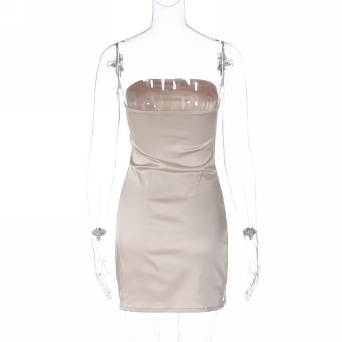 (Real Image)2023 Styles Women Sexy&Fashion Spring&Summer TikTok&Instagram Styles Tube Silk Club DressSKU: #CF88034-1