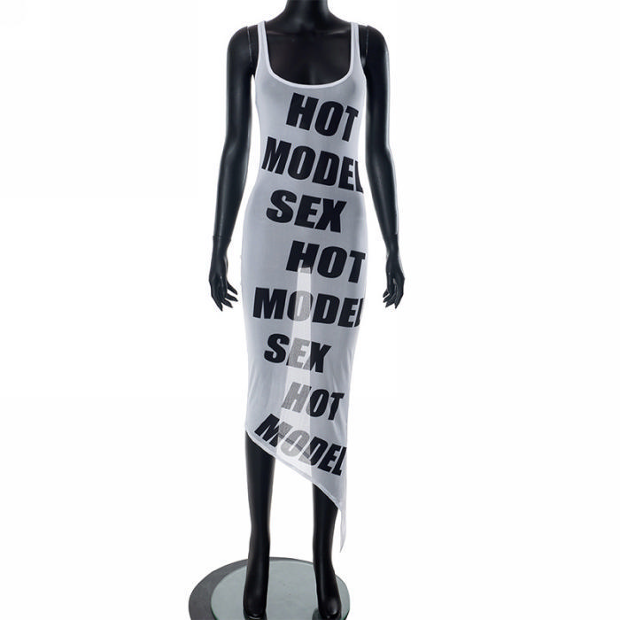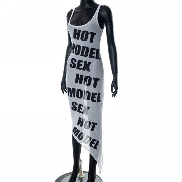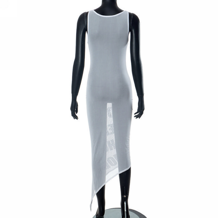 (Real Image)2023 Styles Women Sexy&Fashion Spring&Summer TikTok&Instagram Styles White Print Mesh Irregular Maxi DressSKU: #CF80090-1