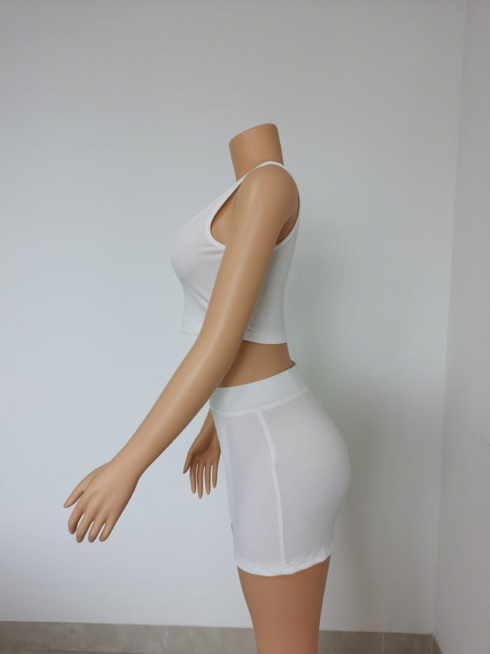 (Real Image)2023 Styles Women Sexy&Fashion Spring&Summer TikTok&Instagram Styles White Short Two Piece SuitSKU: #TP102-1
