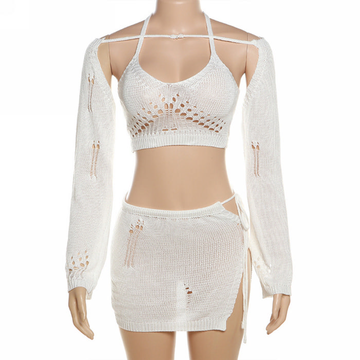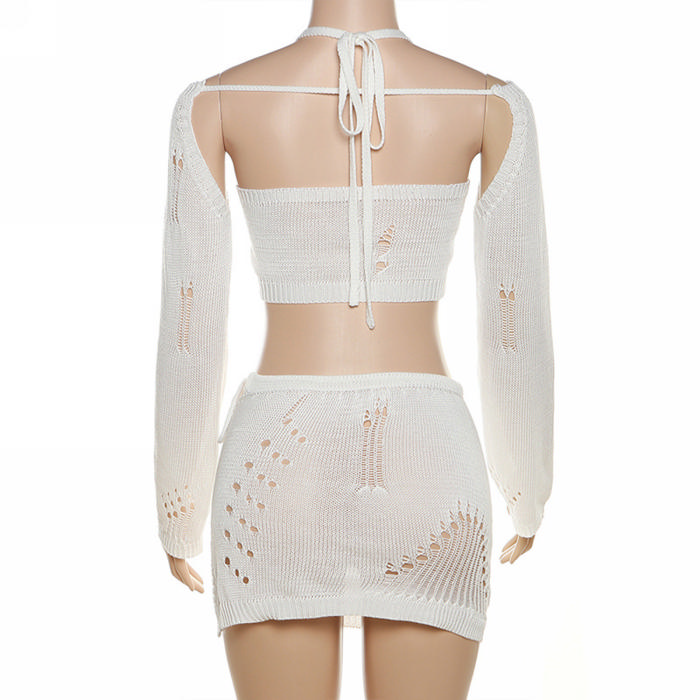 (Real Image)2023 Styles Women Sexy&Fashion Spring&Summer TikTok&Instagram Styles White Sweater Two Piece DressSKU: #CF77416-1