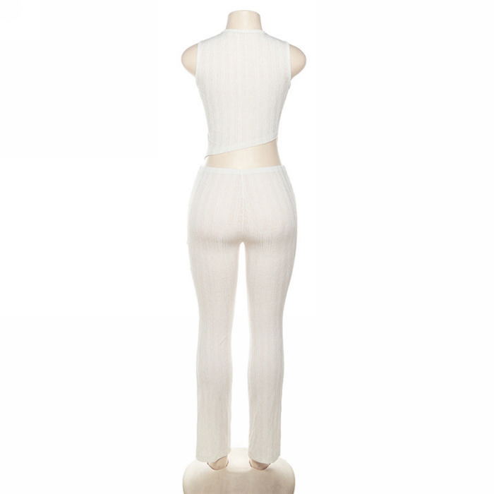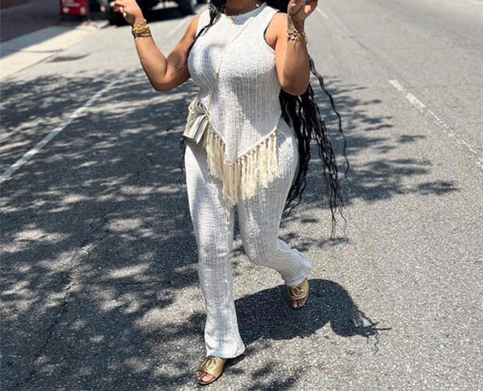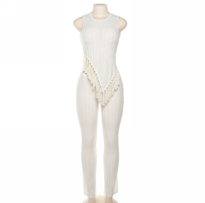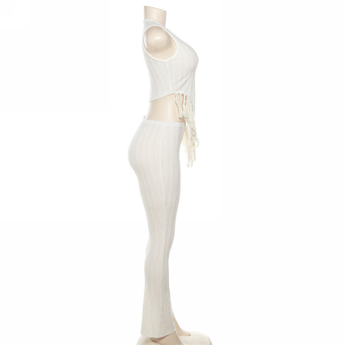 (Real Image)2023 Styles Women Sexy&Fashion Spring&Summer TikTok&Instagram Styles White Tassel Two Piece SuitSKU: #CF77609-1