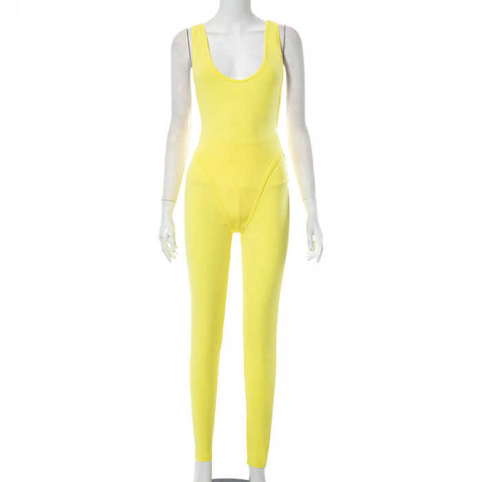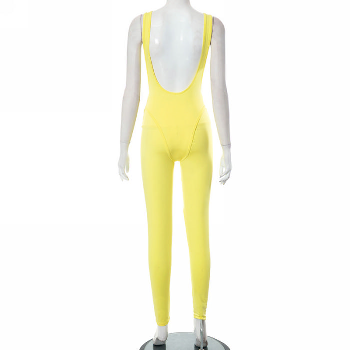 (Real Image)2023 Styles Women Sexy&Fashion Spring&Summer TikTok&Instagram Styles Yellow Bodysuit+Long Pants Two Piece SuitSKU: #CF47587-1