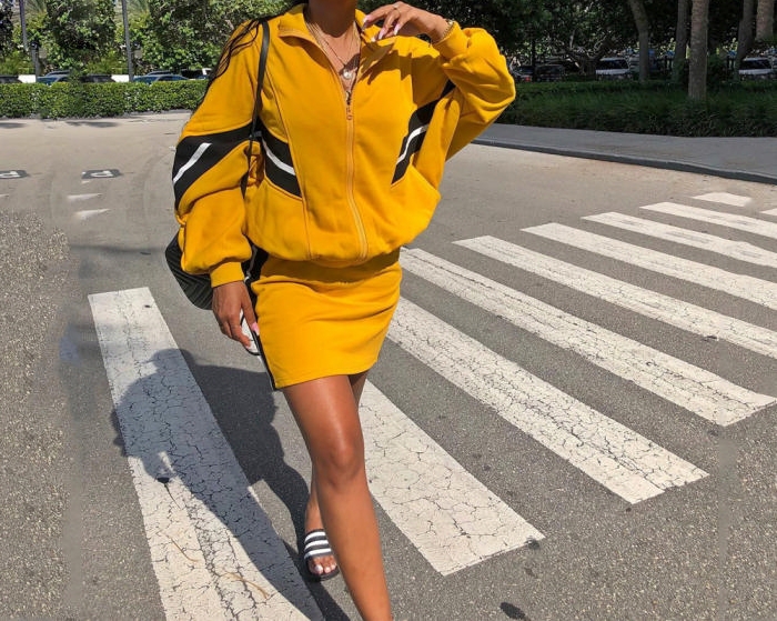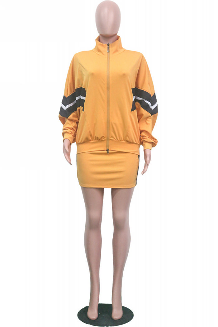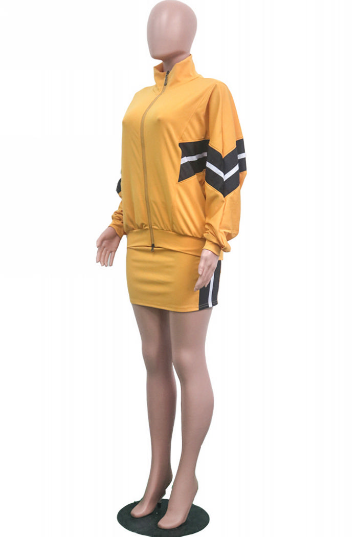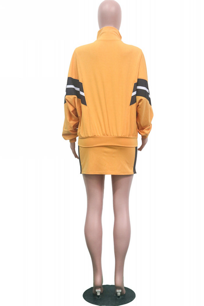 (Real Image)2023 Styles Women Sexy&Fashion Spring&Summer TikTok&Instagram Styles Yellow Front Zipper Two Piece DressSKU: #OU260-1