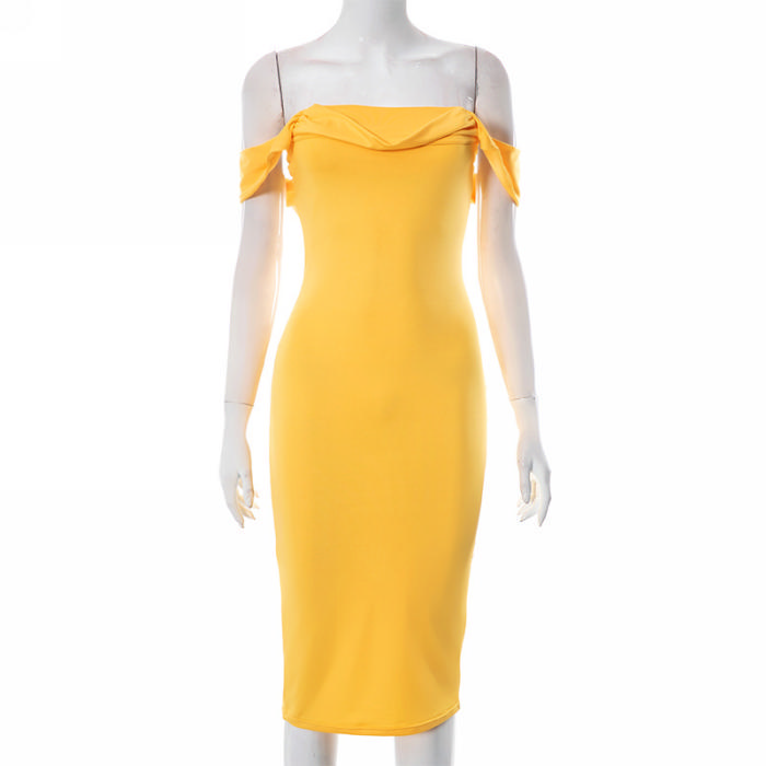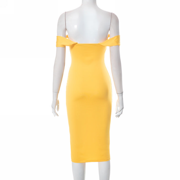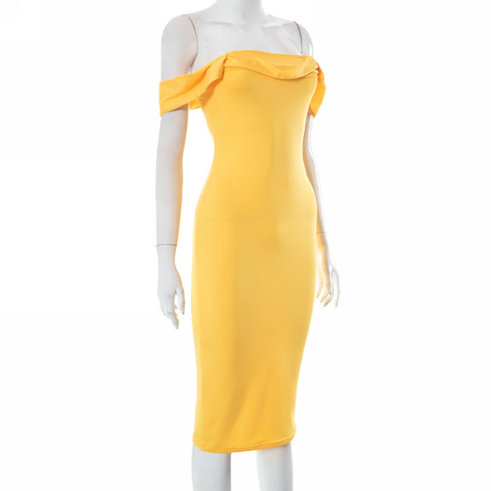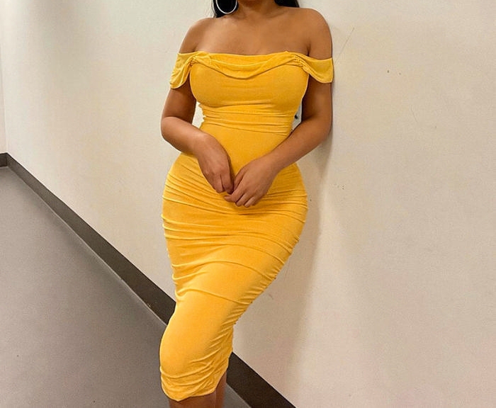 (Real Image)2023 Styles Women Sexy&Fashion Spring&Summer TikTok&Instagram Styles Yellow Off Shoulder Midi DressSKU: #CF80134-1