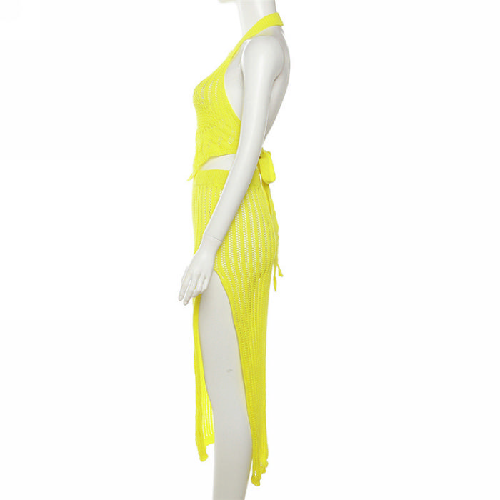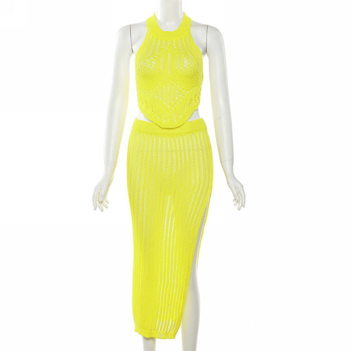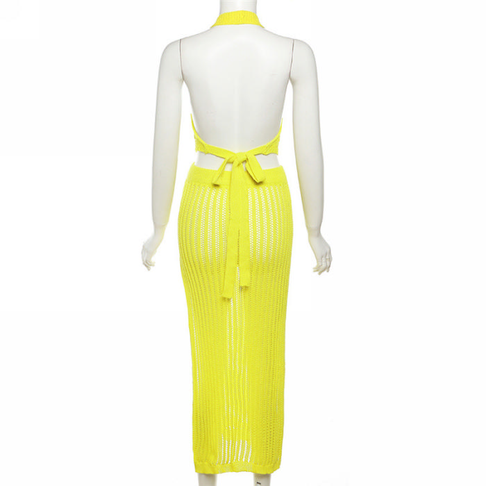 (Real Image)2023 Styles Women Sexy&Fashion Spring&Summer TikTok&Instagram Styles Yellow Sweater Two Piece DressSKU: #CF77473-1