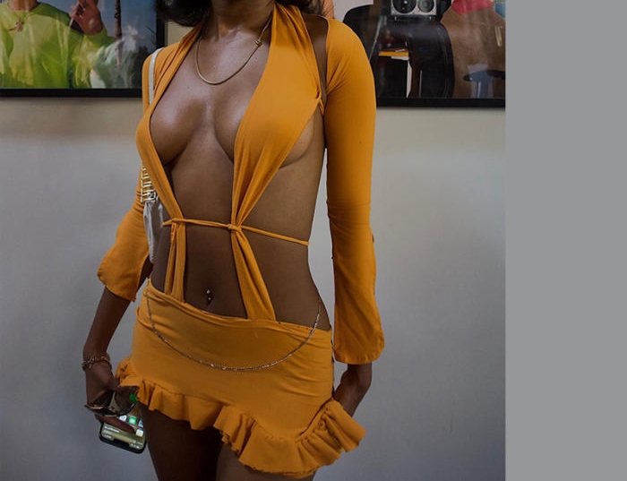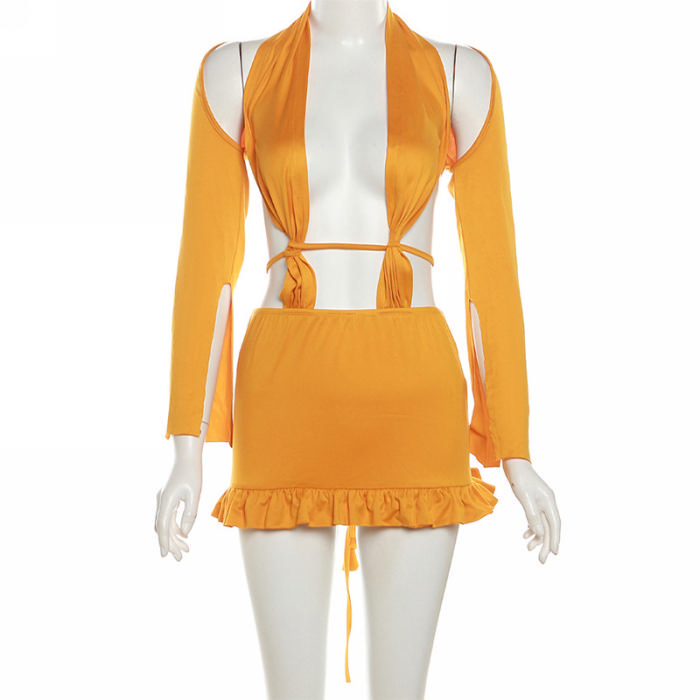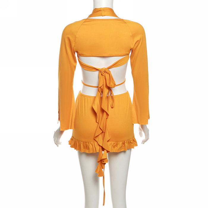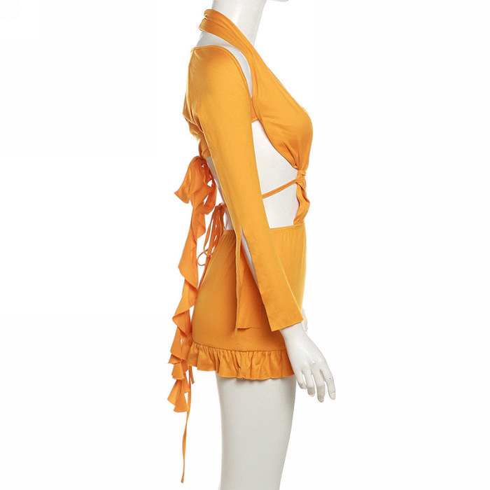 (Real Image)2023 Styles Women Sexy&Fashion Spring&Summer TikTok&Instagram Styles Yellow Tie Two Piece DressSKU: #CF83226-1