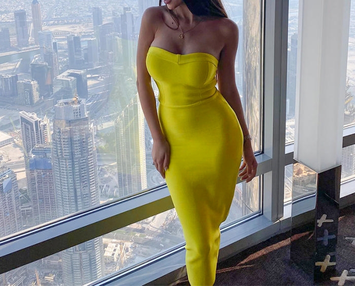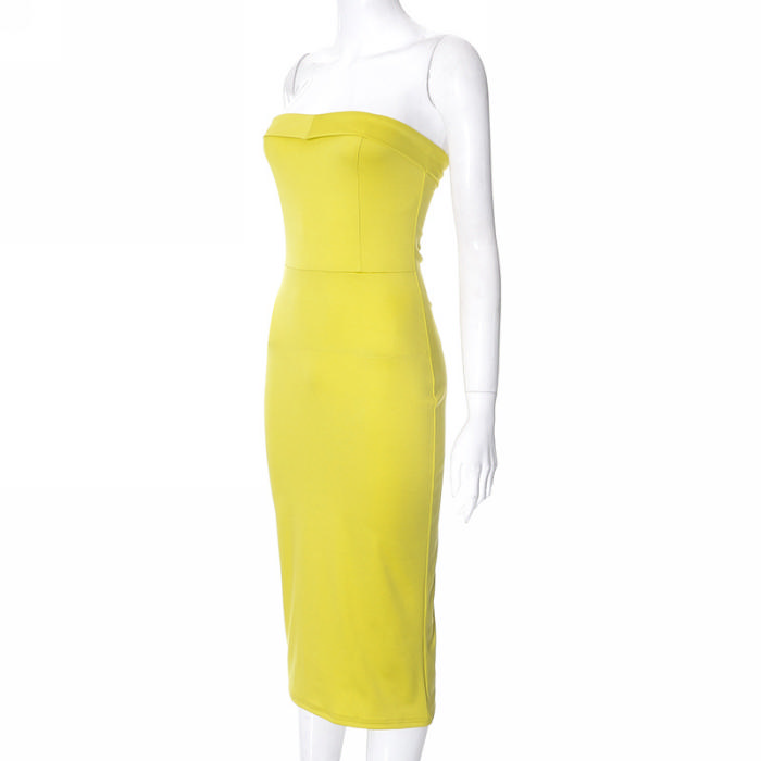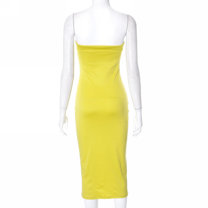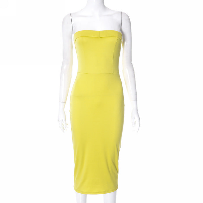 (Real Image)2023 Styles Women Sexy&Fashion Spring&Summer TikTok&Instagram Styles Yellow Tube Midi DressSKU: #CF68272-1