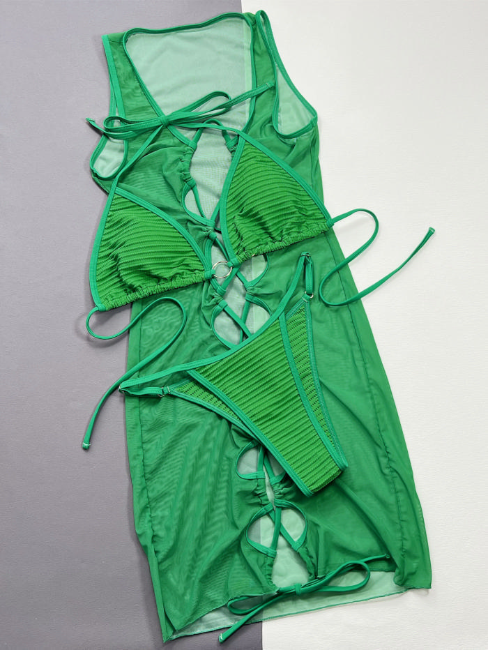 (Real Image)2023 Styles Women Sexy&Fashion Summer TikTok&Instagram Styles Green 3 Piece SwimsuitSKU: #CF55165-1