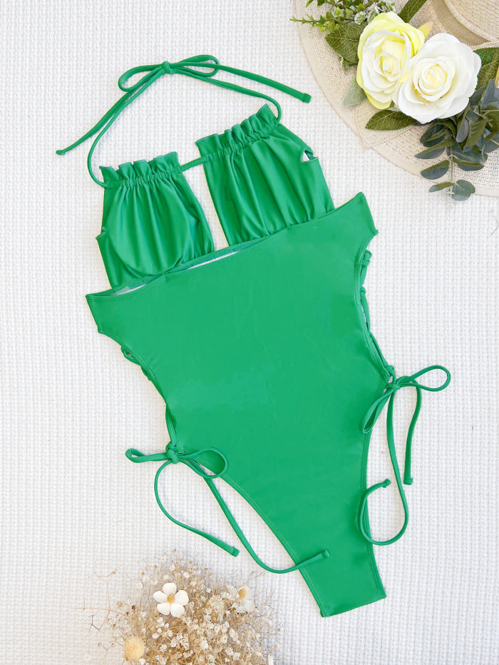 (Real Image)2023 Styles Women Sexy&Fashion Summer TikTok&Instagram Styles Green One Piece SwimwearSKU: #CF60110-1