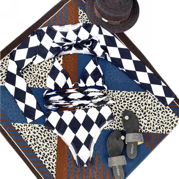 (Real Image)2023 Styles Women Sexy&Fashion Summer TikTok&Instagram Styles Plaid 3 Piece SwimsuitSKU: #CF35125-1