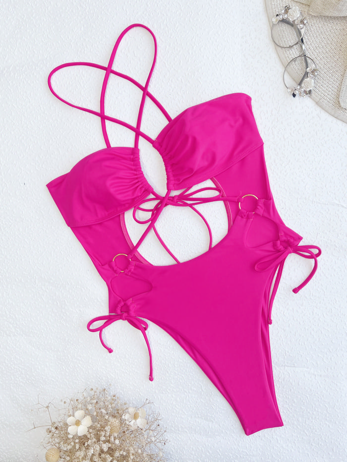 (Real Image)2023 Styles Women Sexy&Fashion Summer TikTok&Instagram Styles Rose Tie One Piece SwimwearSKU: #CF60102-1
