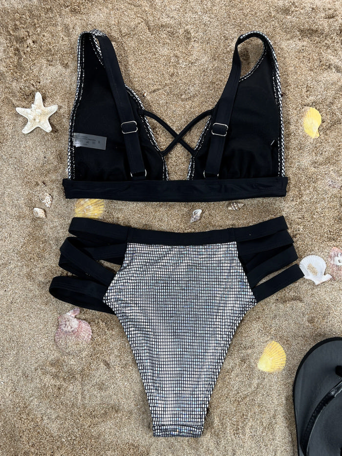 (Real Image)2023 Styles Women Sexy&Fashion Summer TikTok&Instagram Styles Silver Bikini SetSKU: #CF35111-1