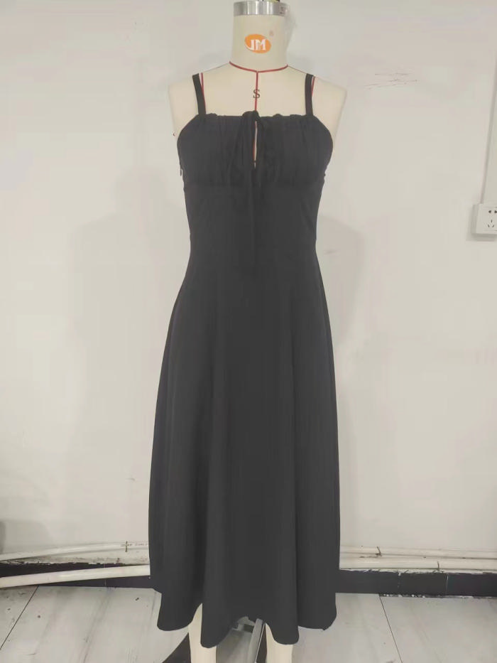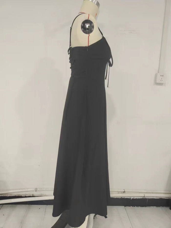 (Real Image)2024 Styles Boho Chiffon Maxi Dress with Plunging Neckline and Tassel TieSKU: #OU2962-1