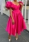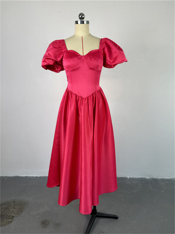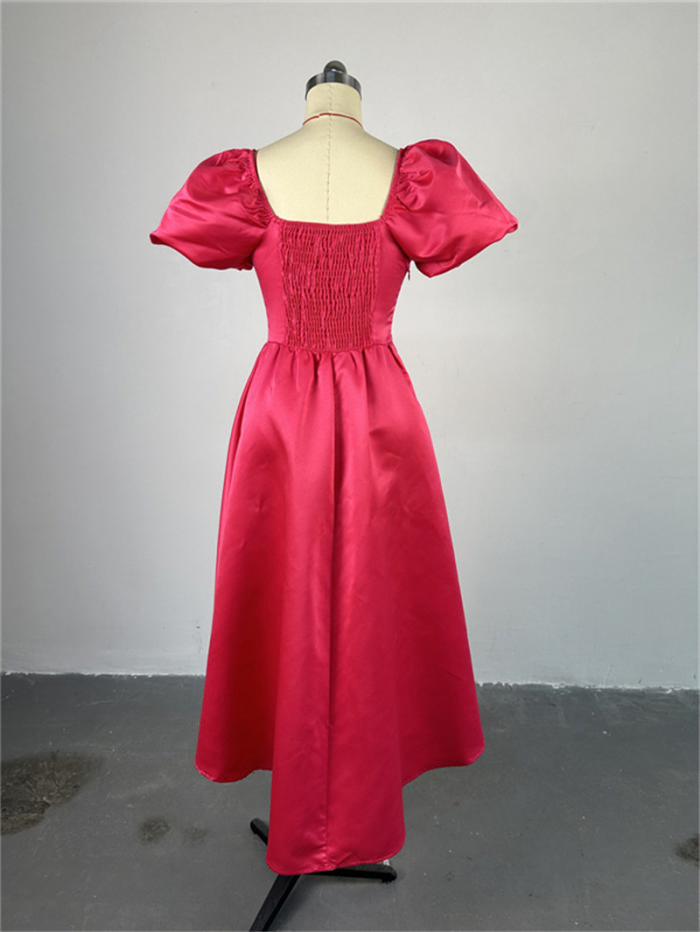 (Real Image)2024 Styles Plus Size Women Spring Fashion Square Neck Puff Sleeve Solid Color Waist-Cinch Mid-Length DressSKU: #CF91040-1