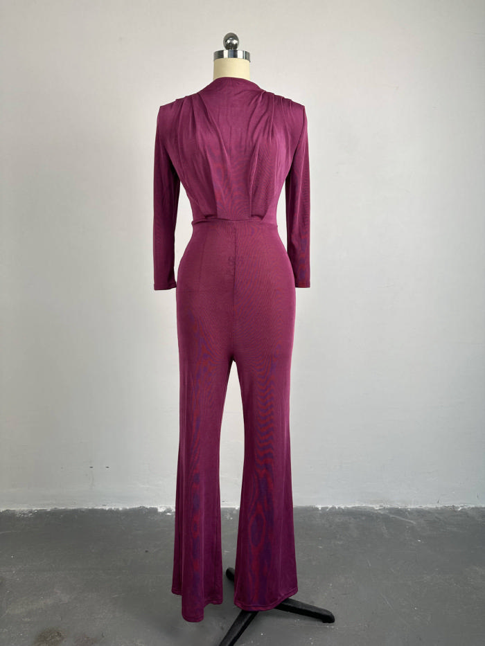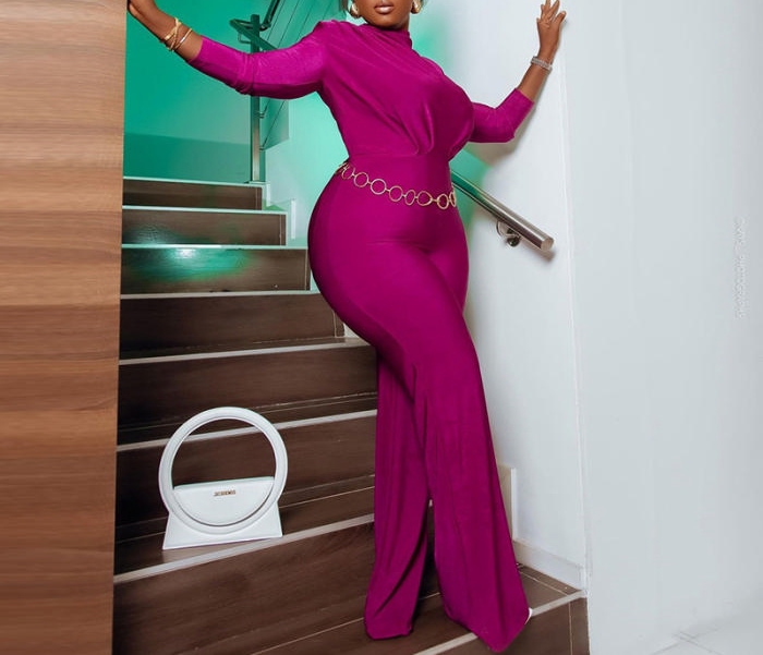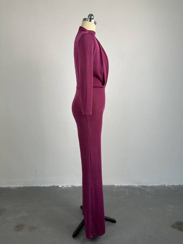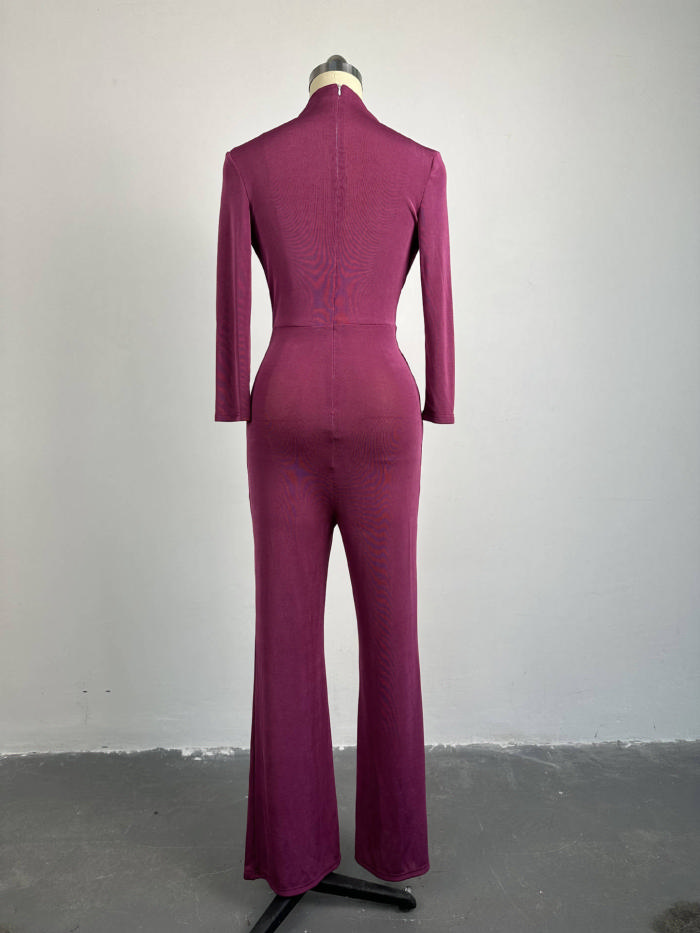 (Real Image)2024 Styles Plus Size Women Spring Stylish Slim Fit Semi-High Neck High-Waist JumpsuitSKU: #CF91076-1
